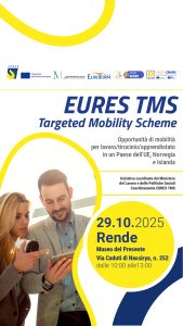 Nell’ambito delle attività di promozione dell’iniziativa europea EURES Targeted Mobility Scheme si realizzerà un evento/laboratorio a Rende, il giorno 29 ottobre 2025, dalle 10:00 alle13:00, presso il Museo del Presente, in Via Caduti di Nassirya, n. 252.