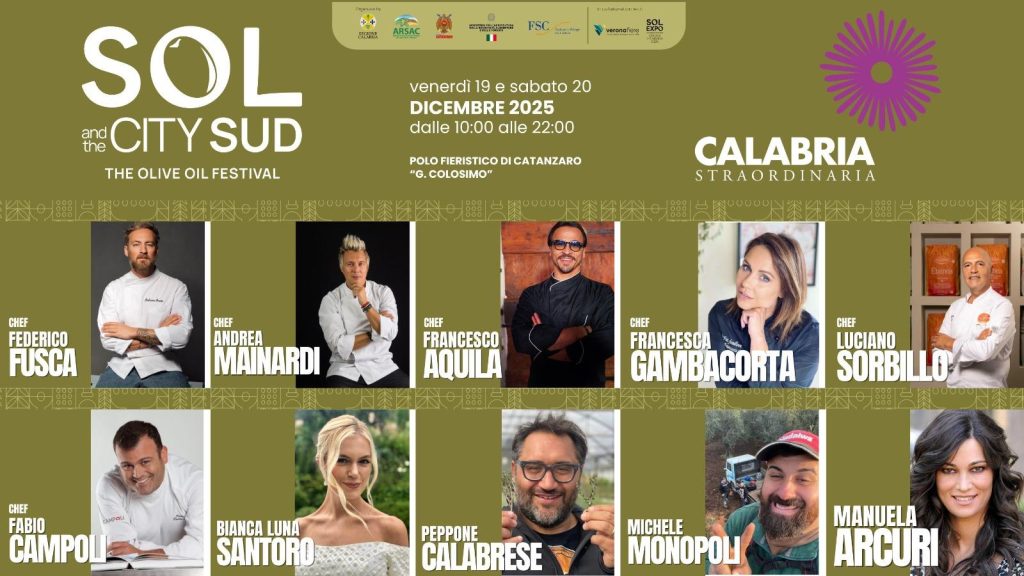 “Sol and the City Sud” nasce con l’obiettivo di valorizzare soprattutto le eccellenze olearie calabresi, ma anche l’intero patrimonio agroalimentare del Sud Italia, offrendo uno sguardo ampio e contemporaneo su un settore che in Calabria trova uno dei suoi punti di forza più rilevanti: con 180 mila ettari di oliveti e un mosaico di cultivar autoctone riconosciute anche attraverso numerose DOP e IGP, la regione si conferma infatti tra le protagoniste assolute della produzione nazionale. Le due giornate, con ingresso gratuito dalle 10 alle 22, saranno animate da un fitto programma che alternerà momenti di approfondimento con studiosi ed esperti del settore, percorsi di approfondimento dedicati all’assaggio e agli impieghi dell’olio nel benessere e nella cosmesi, non dimenticando il ruolo importante che ha in Calabria la produzione di pane, show cooking curati da chef di primo piano. Spazio, inoltre, alle nuove frontiere relative ai diversi utilizzi dell’olio, ma anche ad attività che coinvolgeranno famiglie e bambini.