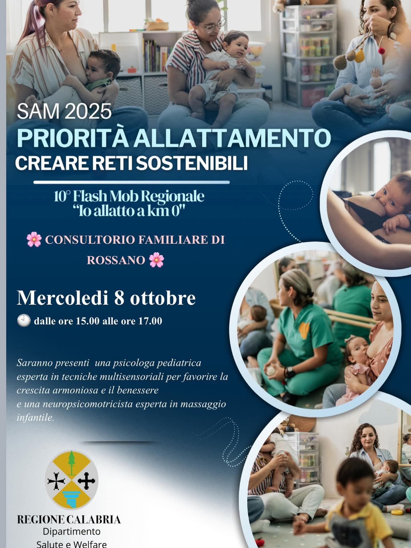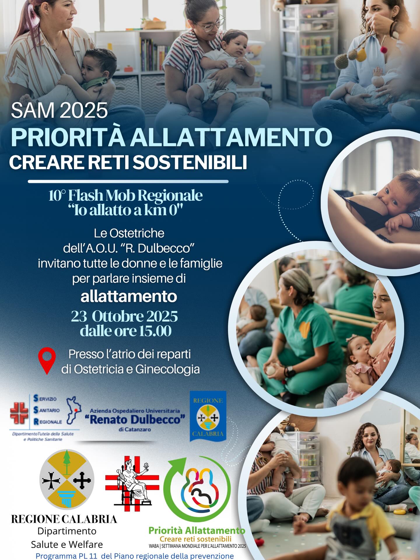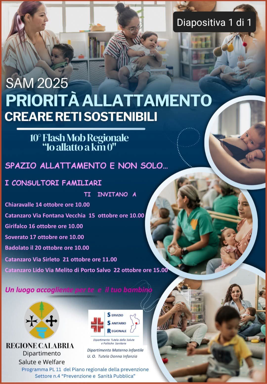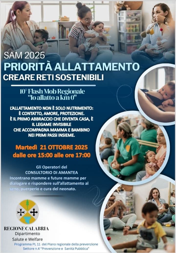In occasione della Settimana Mondiale dell’Allattamento Materno (SAM), che si celebra in tutto il mondo dal 1° al 7 ottobre 2025, il Dipartimento Salute e Welfare ha promosso il 10° flashmob regionale “Io allatto a km zero”, con l’obiettivo di sensibilizzare la cittadinanza sull’importanza dell’allattamento al seno.