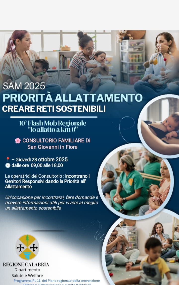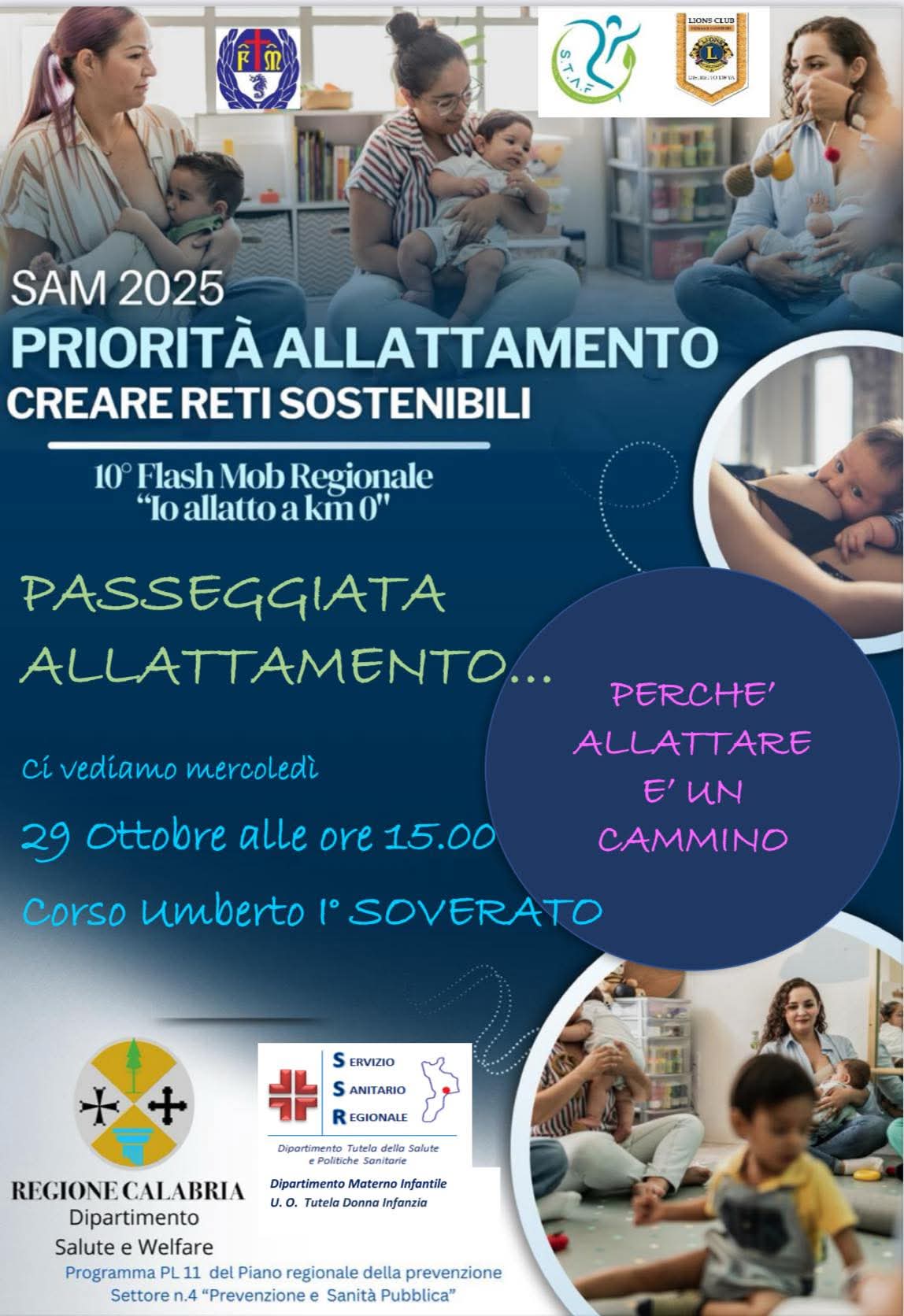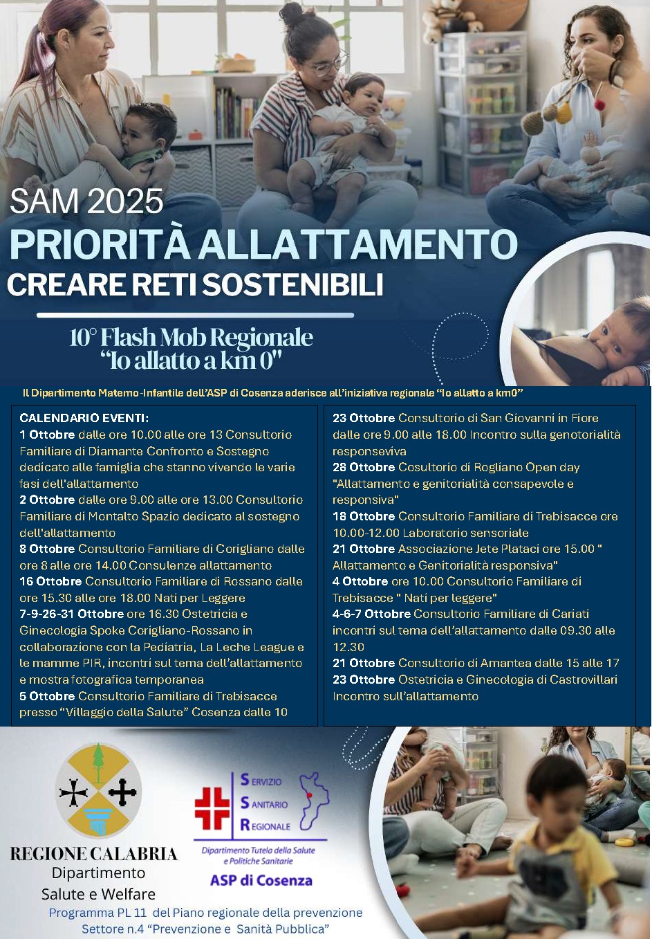 In occasione della Settimana Mondiale dell’Allattamento Materno (SAM), che si celebra in tutto il mondo dal 1° al 7 ottobre 2025, il Dipartimento Salute e Welfare ha promosso il 10° flashmob regionale “Io allatto a km zero”, con l’obiettivo di sensibilizzare la cittadinanza sull’importanza dell’allattamento al seno.